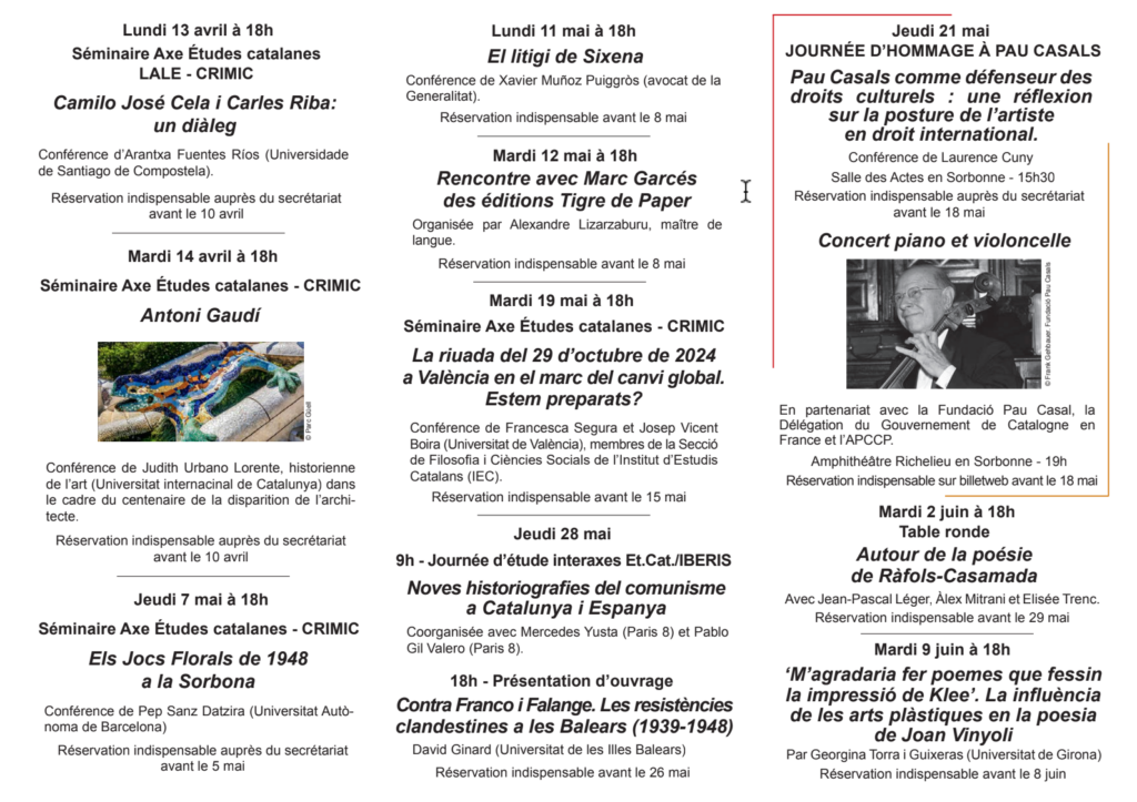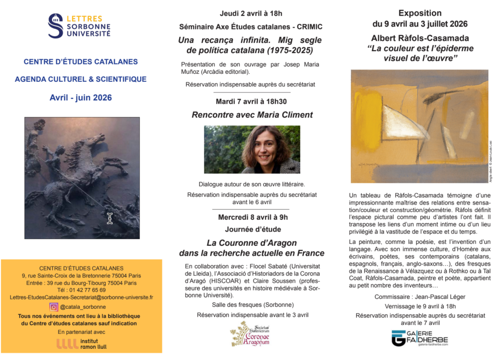 Programa del Centre d’Etudes Catalanes de la Sorbonne Publicat el 1 d'abril de 2026 per casalpar Respon